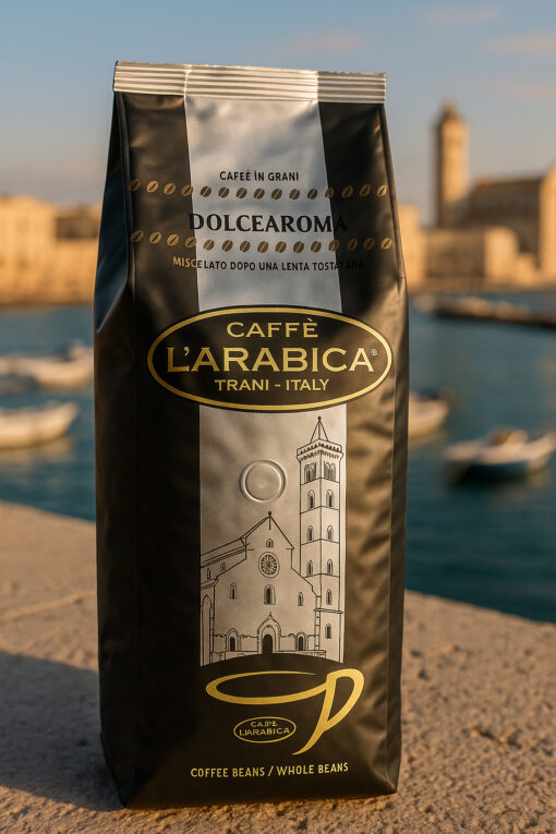 Ziarna arabiki 40 % – z Brazylii i robusty 60 % – z Indii. Palone powoli w Trani – w samym sercu Apulii, gdzie kawa to codzienny rytuał, a nie nawyk.