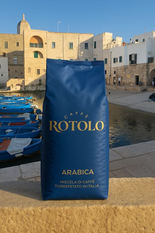 Caffe Rotolo Arabika to mieszanka stworzona dla tych, którzy cenią subtelność i wyrafinowany smak. palona tradycyjnie w Monopoli, zachwyca lekkością i bogactwem aromatów, które przenoszą prosto do nadmorskiej kawiarni w sercu Apulii.